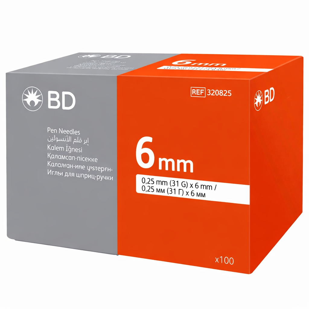 BD İnsülin Kalem İğnesi 31G 0,25 x 6 mm 100'lü. İnsülin kalemi kullanıcıları için tasarlanmış yüksek konforlu profesyonel uç; acıyı minimize eden 31G ince yapı ve güvenli emilim sağlayan 6 mm ideal uygulama derinliğiyle her türlü insülin kalemiyle sızdırmaz uyum sağlayan steril, tek kullanımlık kalem iğnesi.
