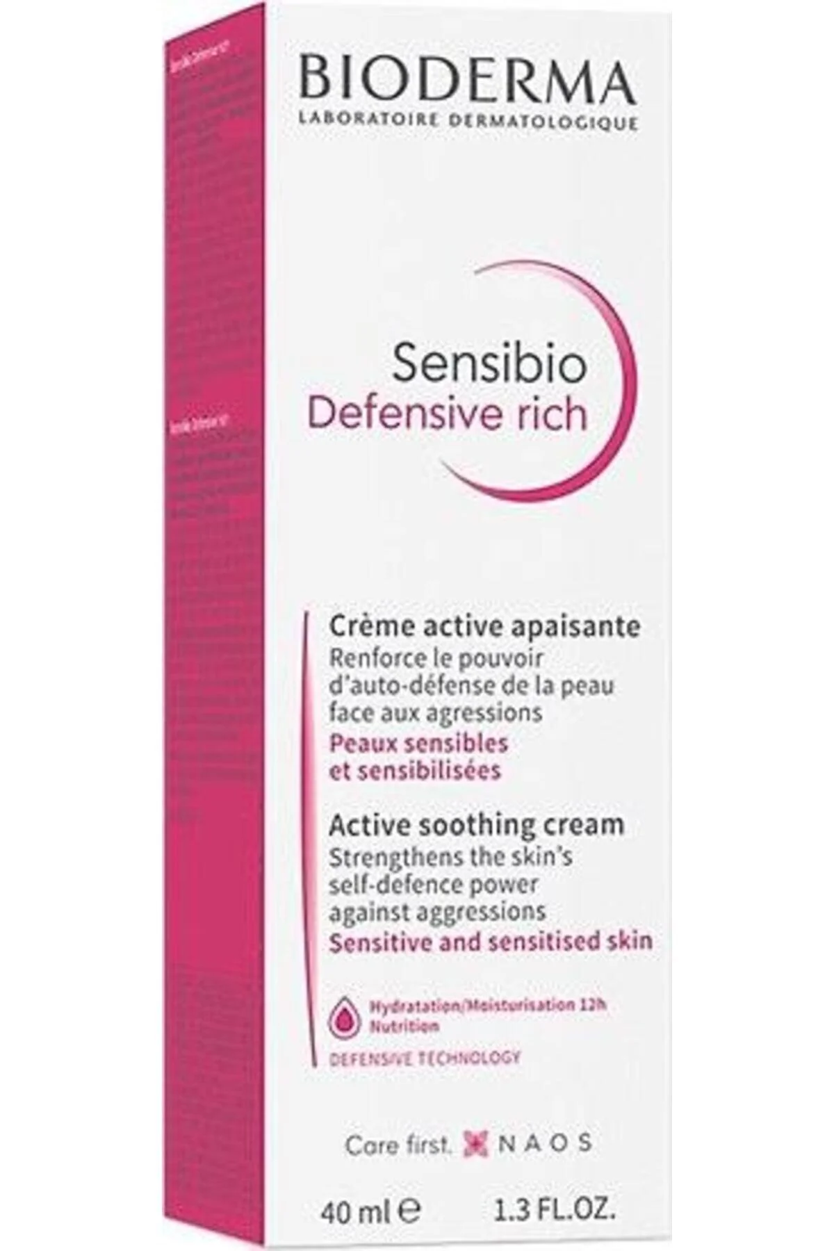 Bioderma Sensibio Defensive Rich Cream 40 ml. Kuruluk, kızarıklık ve gerginlik yaşayan hassas ciltler için geliştirilmiş; Defensive Teknolojisi ile cildin doğal savunma mekanizmasını güçlendiren, anında yatıştıran ve 12 saat boyunca nemlendiren, parfümsüz ve zengin dokulu günlük bakım kremi.